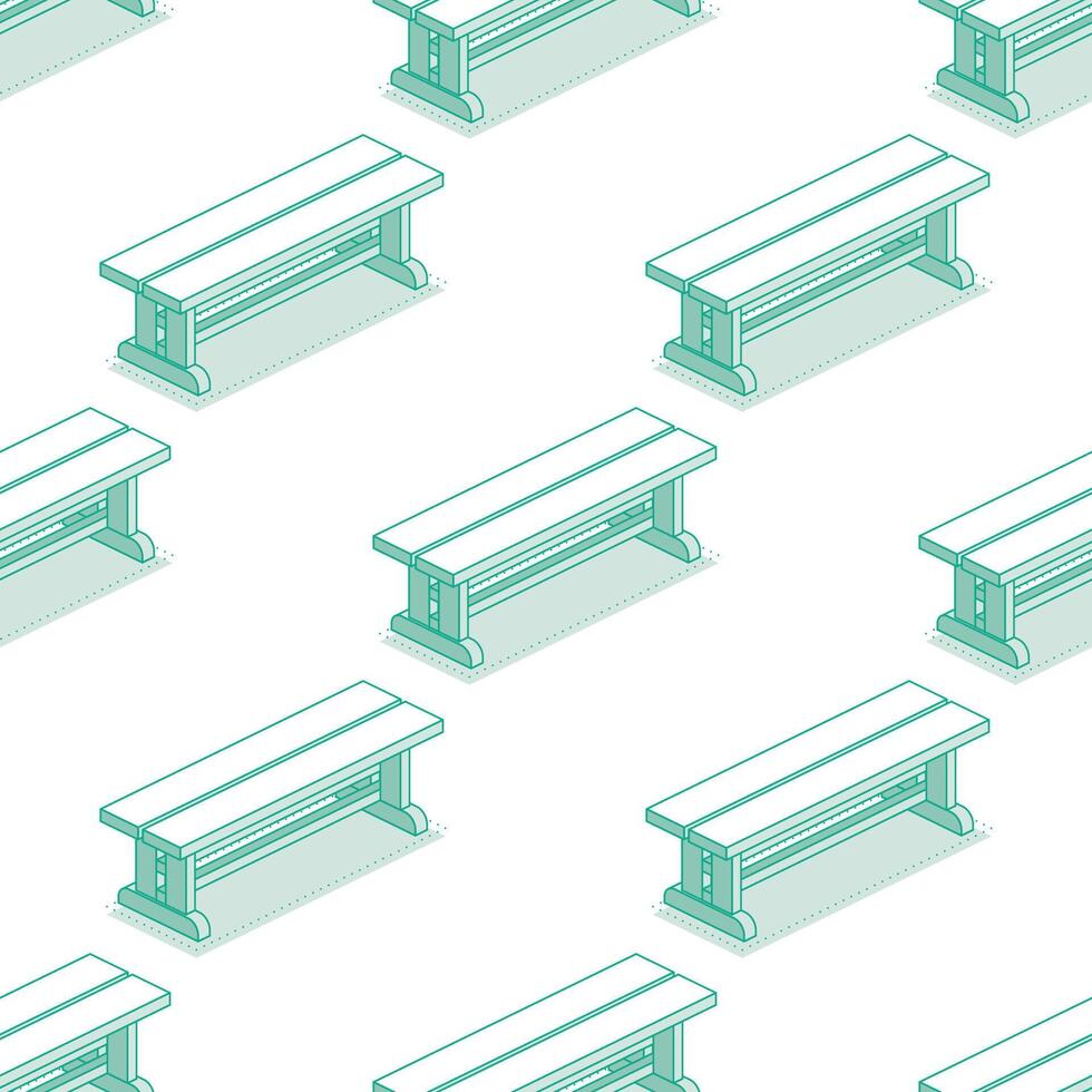 Seamless pattern with modern street bench. Isometric outline objects isolated on clean white background. Perfect for representing public spaces and urban planning. Pro Vector