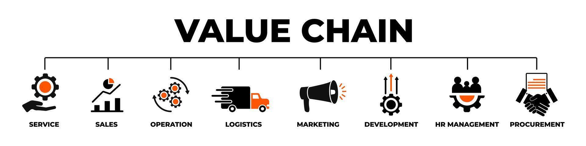 Value chain business analysis. Strategy for service and development with infographics Pro Vector