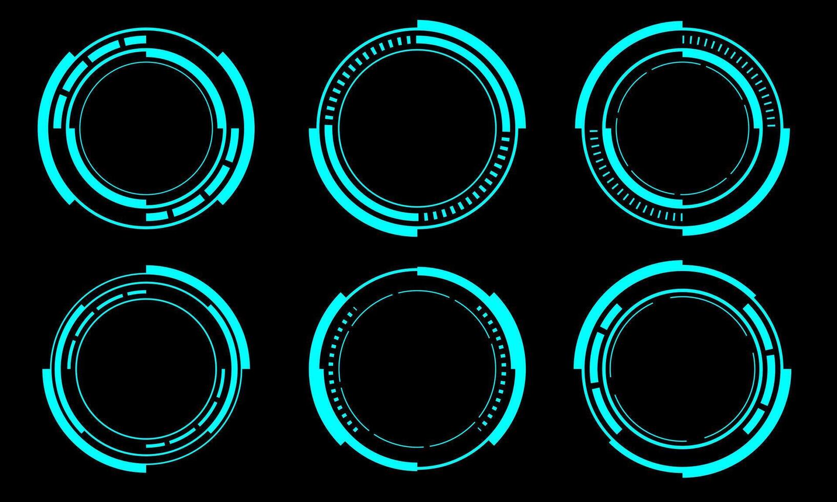 Set of sci fi blue circle user interface elements technology futuristic design modern creative on black background Pro Vector