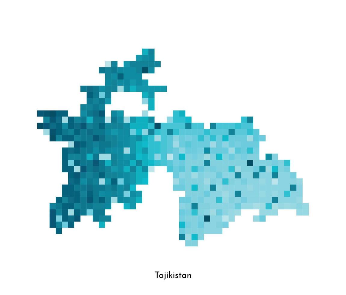 isolated geometric illustration with simple icy blue shape of Tajikistan map. Pixel art style for NFT template. Dotted logo with gradient texture for design on white background Pro Vector