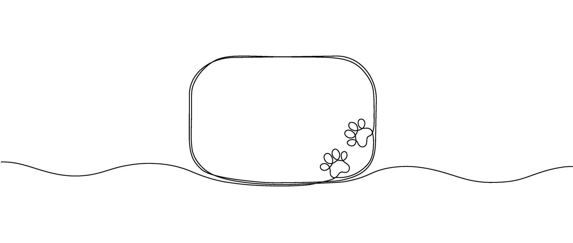 Black square frame with paw print of a dog or cat drawn in one continuous line. Single line frame with paw print. editable line illustration Pro Vector