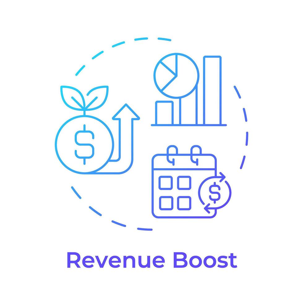 Revenue boost blue gradient concept icon. Business profitability, ecommerce. Performance metrics. Round shape line illustration. Abstract idea. Graphic design. Easy to use in infographic, presentation Pro Vector