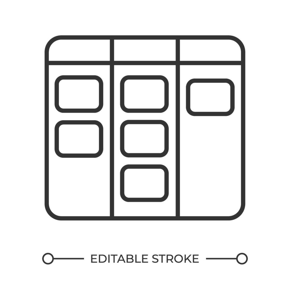 Kanban flowchart linear icon. Board with notes icon. Workflow management. Work in progress. Schedule system. Thin line illustration. Contour symbol. outline drawing. Editable stroke Pro Vector