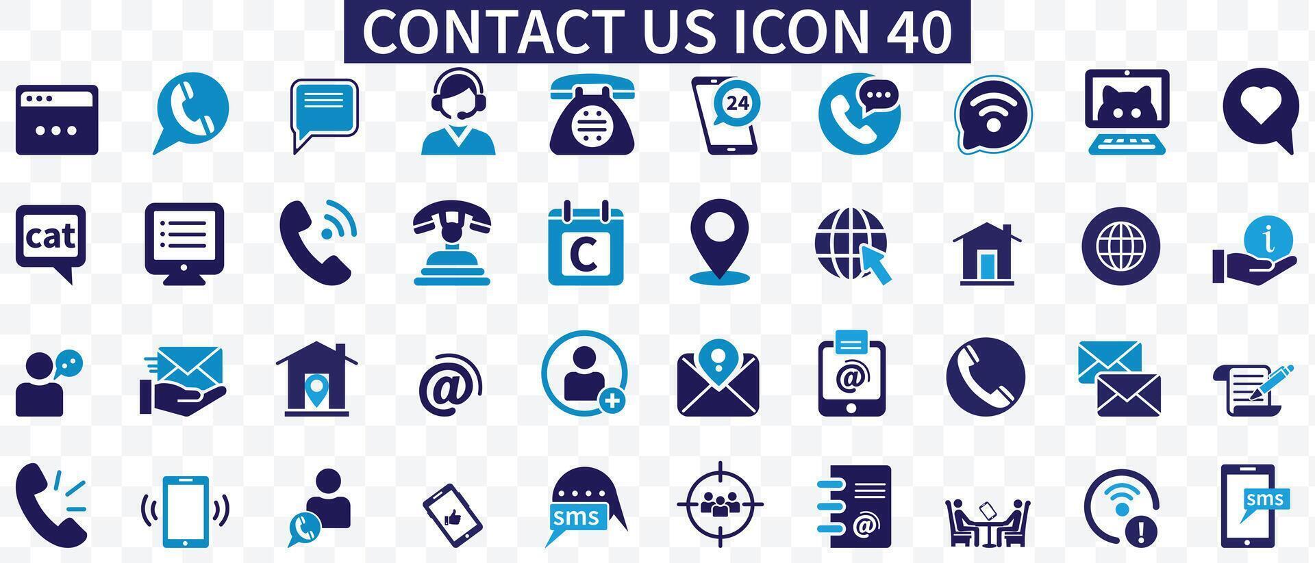 Contact icon set. Containing e-mail, phone, address, customer service, call, website, and more. Solid icons collection. Pro Vector