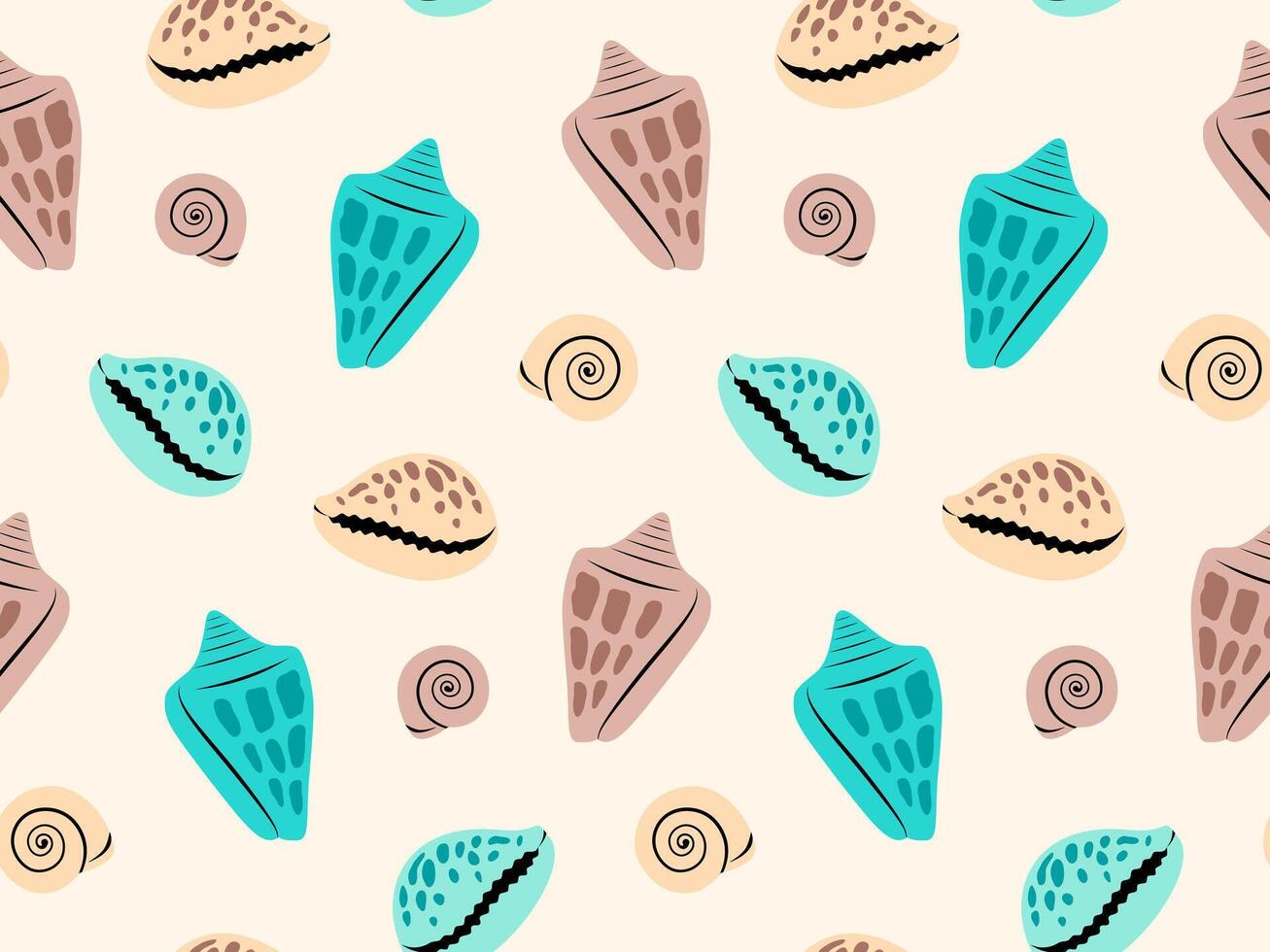 Seashells seamless pattern on light background in flat style Pro Vector