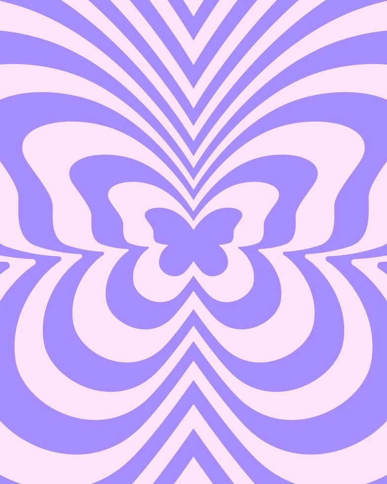 Repeating purple butterflies background in trendy retro 2000s design. Groovy psychedelic pattern in y2k style for poster, banner, invitation card, print Pro Vector