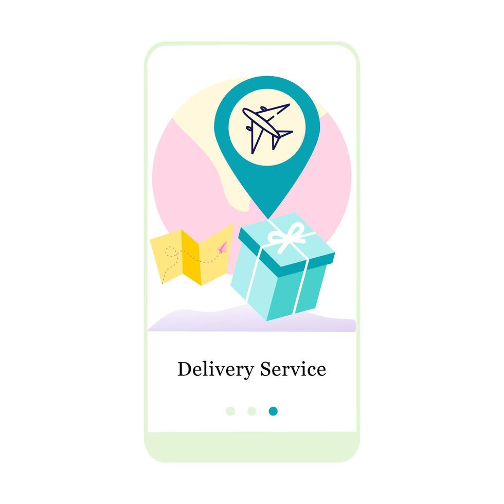 Vector illustration of Free Delivery Service, Free Shipping and Fast Delivery on the onboarding app screen and web concept. Interface UX, UI GUI screen template for app smart phone or web site banner.