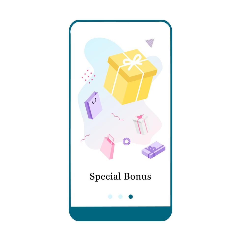Vector illustration of Big sale, Special Gifts and Best Discount on the onboarding app screen and web concept. Modern interface onboard UX, UI GUI screen template for smart phone or web site banner.