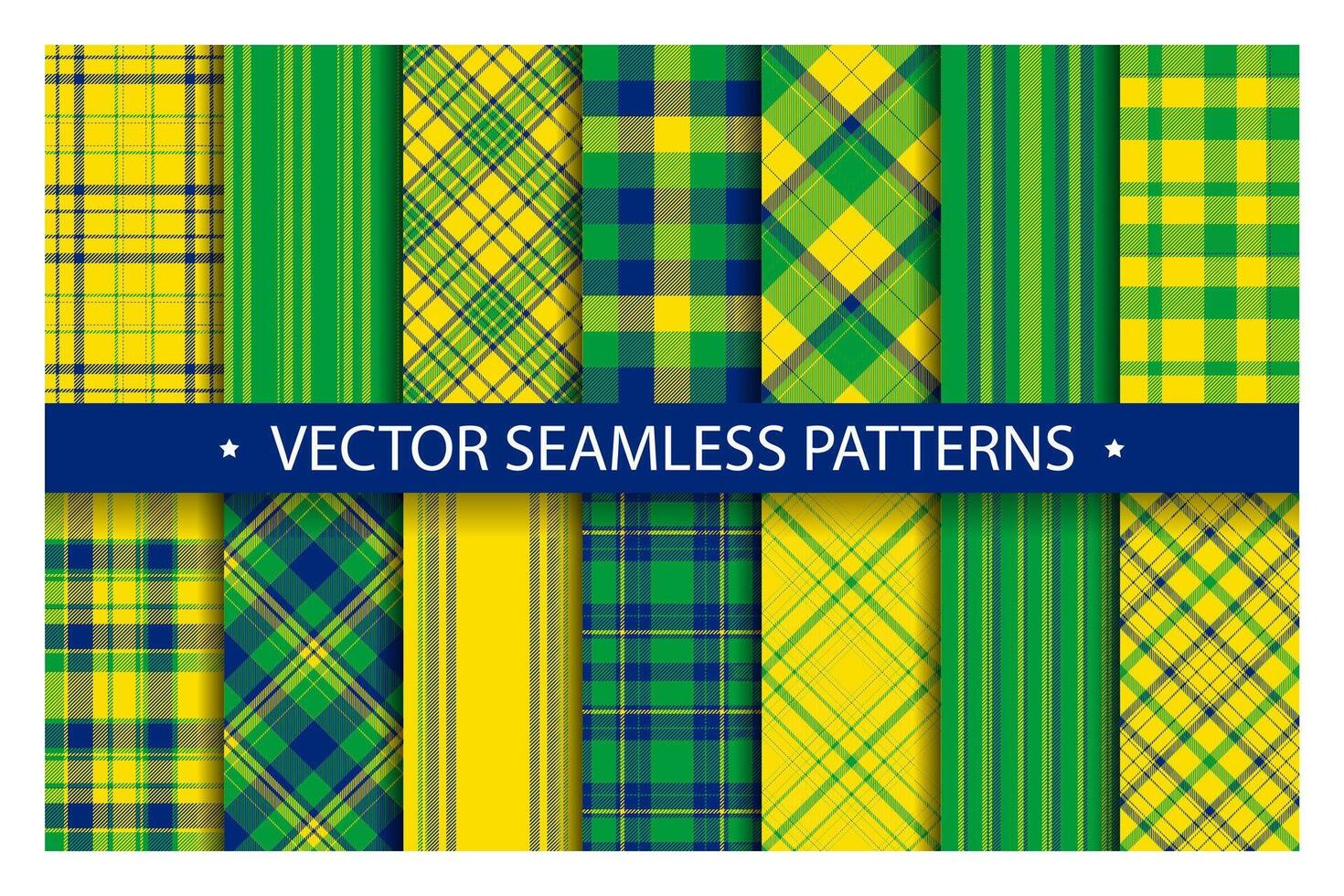 Set plaid pattern seamless. Tartan patterns fabric texture. Checkered geometric background. Scottish stripe blanket backdrop Pro Vector