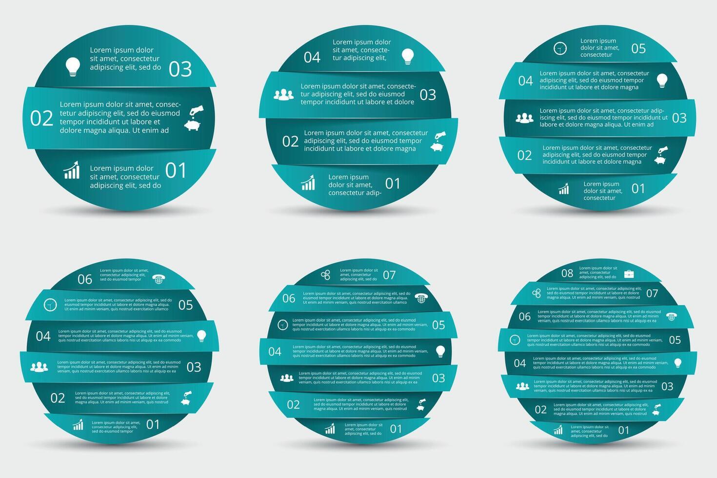 Infographic elements set. Template for diagram, graph, presentation and chart. Business concept with 3, 4, 5, 6, 7, 8 options, parts, steps or processes. Pro Vector