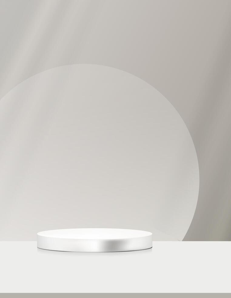 Grey Background,Studio Wall Room,3d White Podium Cylinder Display Stand with Light,Shadow on Table,Backdrop for Spring,Summer product presentation,Concept for Web Banner in Autumn,Winter Pro Vector