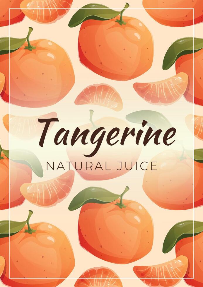 promotional fruit banner. A4 leaflet with a background of a pattern with ripe citrus tangerines. Juice packaging design. Pro Vector