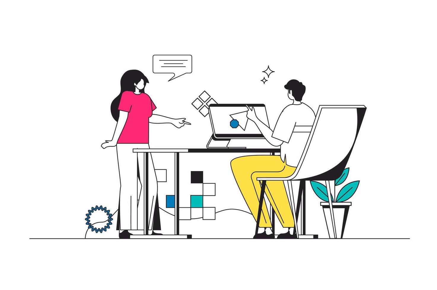 Best feedback outline web concept in modern flat line design. Clients leaving comments with satisfaction review and quality evaluation, giving positive rating in online survey. illustration Pro Vector