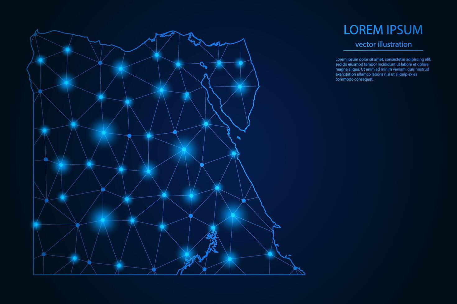 Abstract image Egypt map - With Blue Glow Dots And Lines On Dark Gradient Background, 3D Mesh Polygon Network Connection. Pro Vector
