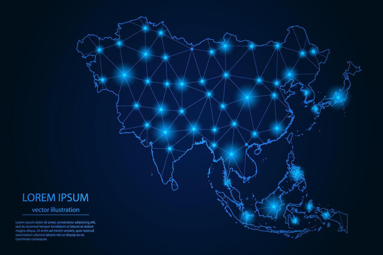 Abstract image Asia map - With Blue Glow Dots And Lines On Dark Gradient Background, 3D Mesh Polygon Network Connection. Pro Vector