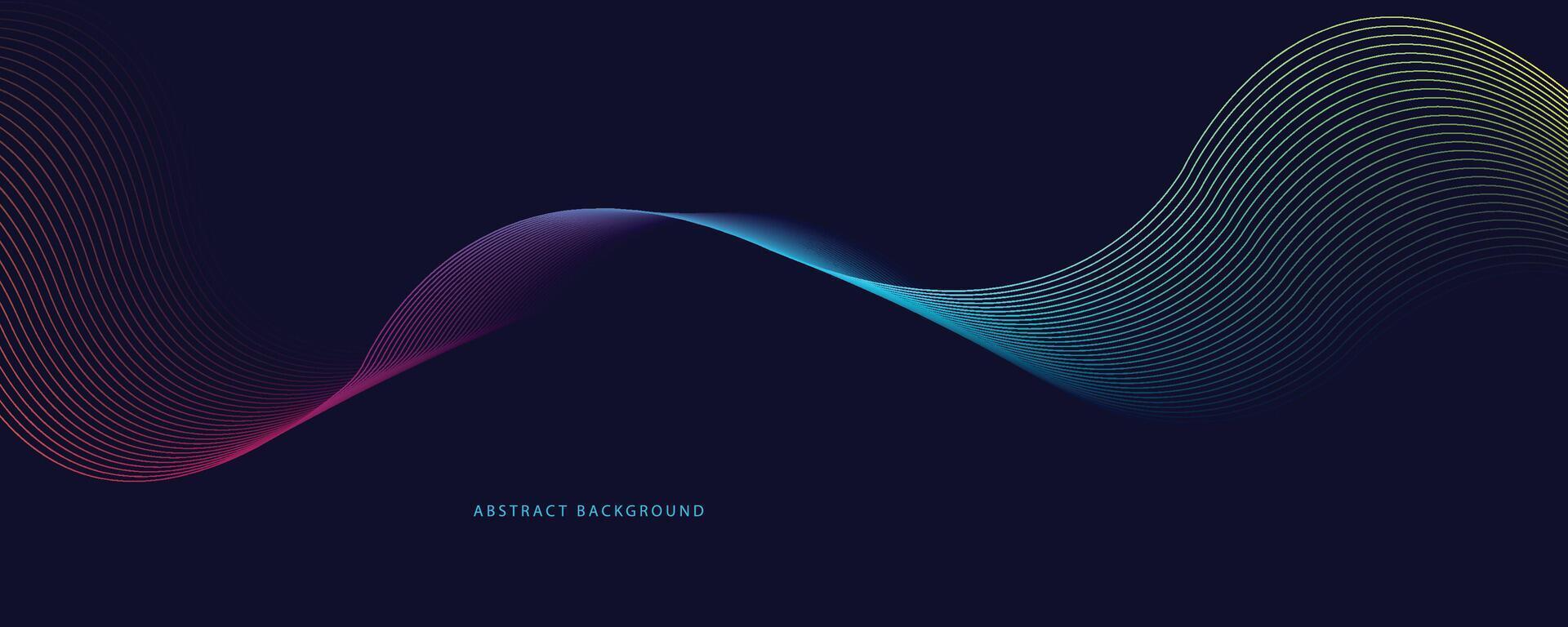 Dark abstract background with glowing wave illustration. Shiny moving lines design element. Modern purple, blue, yellow gradient flowing wave lines Background. Futuristic technology concept. Pro Vector