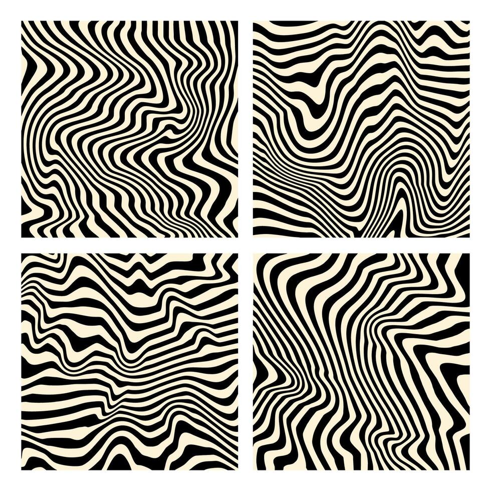 Groovy hippie 70s backgrounds. Waves, swirl, twirl pattern. Twisted and distorted texture in trendy retro psychedelic style. Y2k aesthetic. Pro Vector