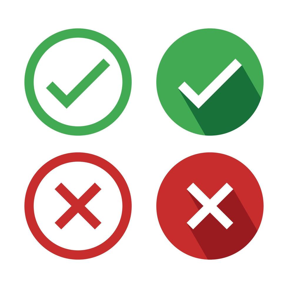 Check Mark And Cross Circles With Long Shadow Free Vector