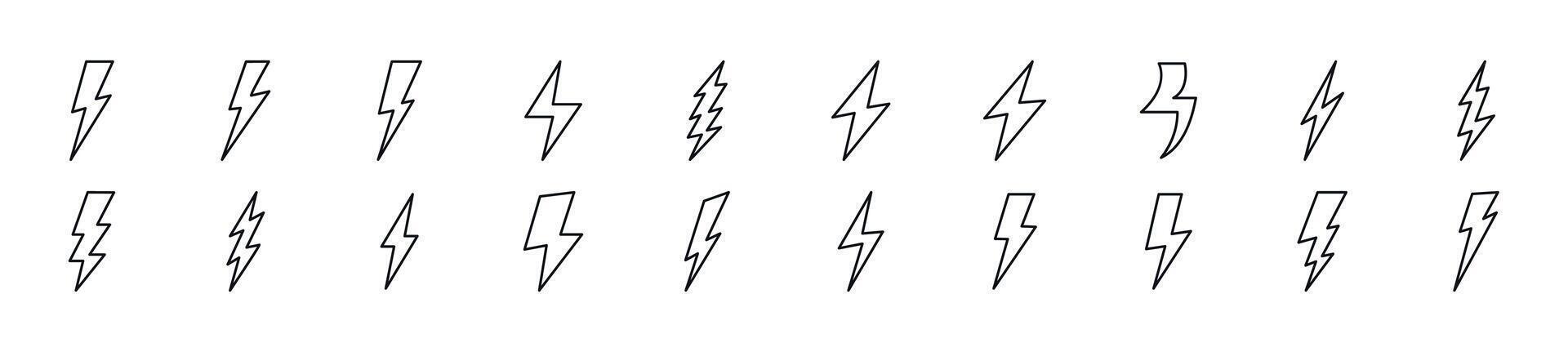 Pack of linear symbols of lightning. Editable stroke. Linear symbol for web sites, newspapers, articles book Pro Vector