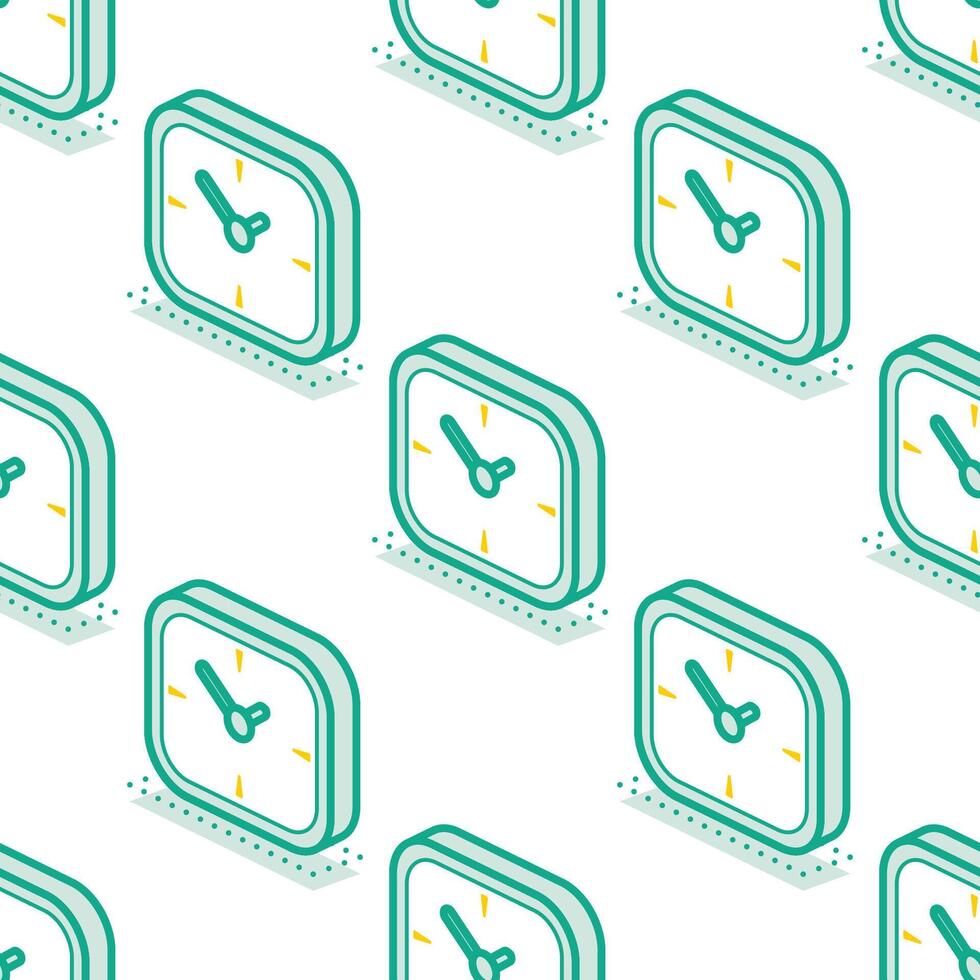 Isometric seamless pattern with row of clocks. Objects isolated on white background. Pro Vector