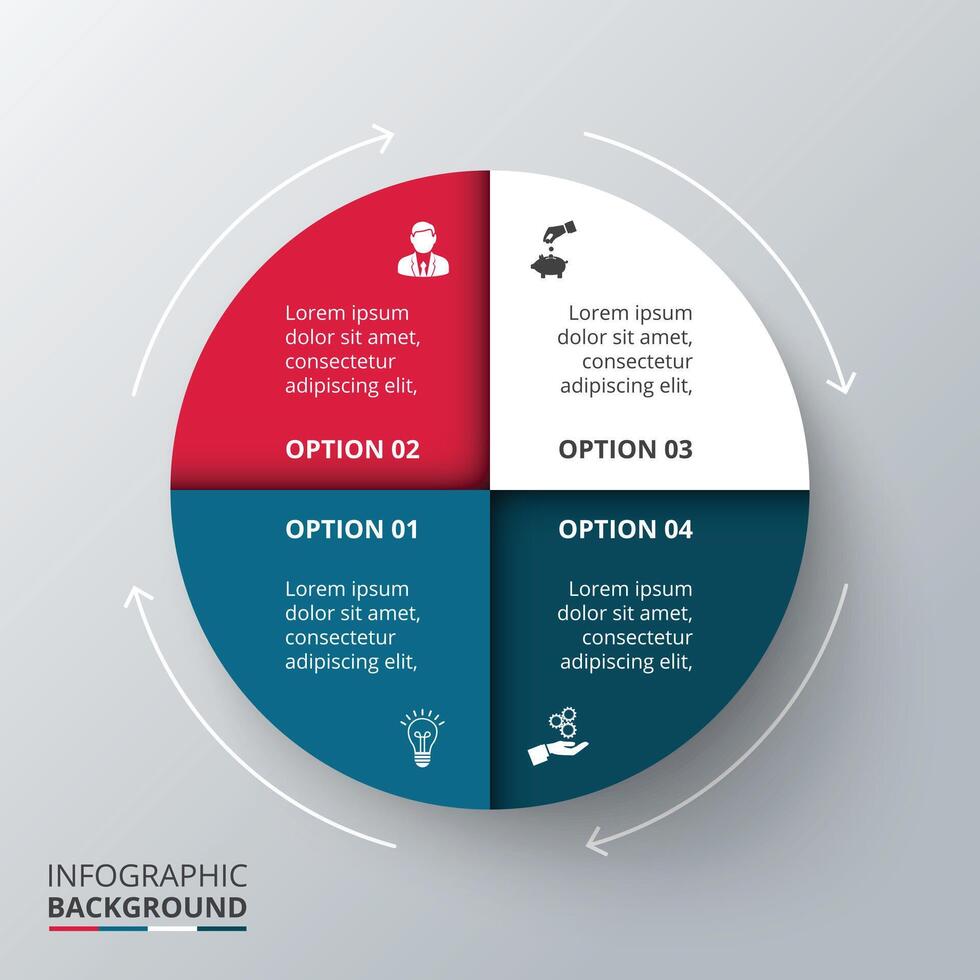 Circle element for infographic. Template for cycling diagram, graph, presentation. Business concept with 4 options, parts, steps or processes. Pro Vector