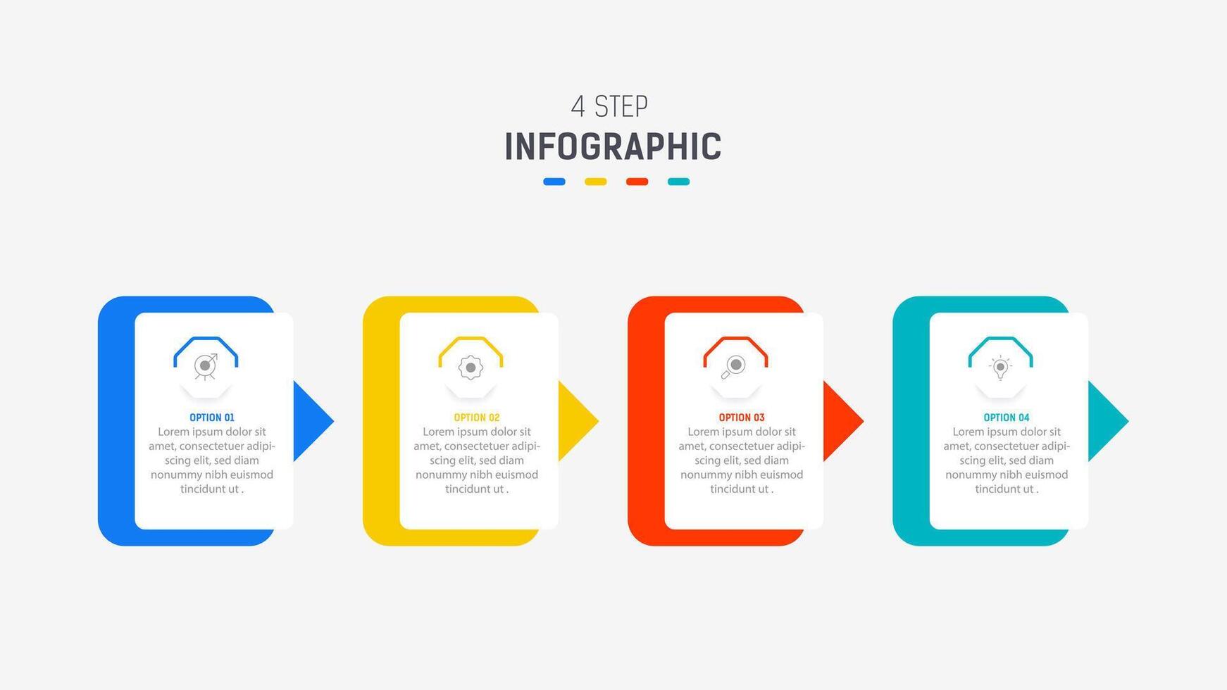 Four Step Infographic element design template for presentation. process diagram and presentations step, workflow layout, banner, flow chart, info graphic illustration. Pro Vector