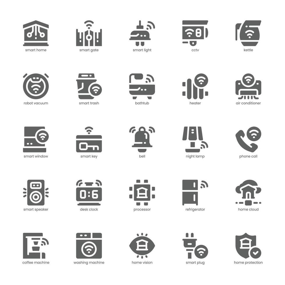 Smarthome icon pack for your website, mobile, presentation, and logo design. Smarthome icon glyph design. graphics illustration and editable stroke. Pro Vector