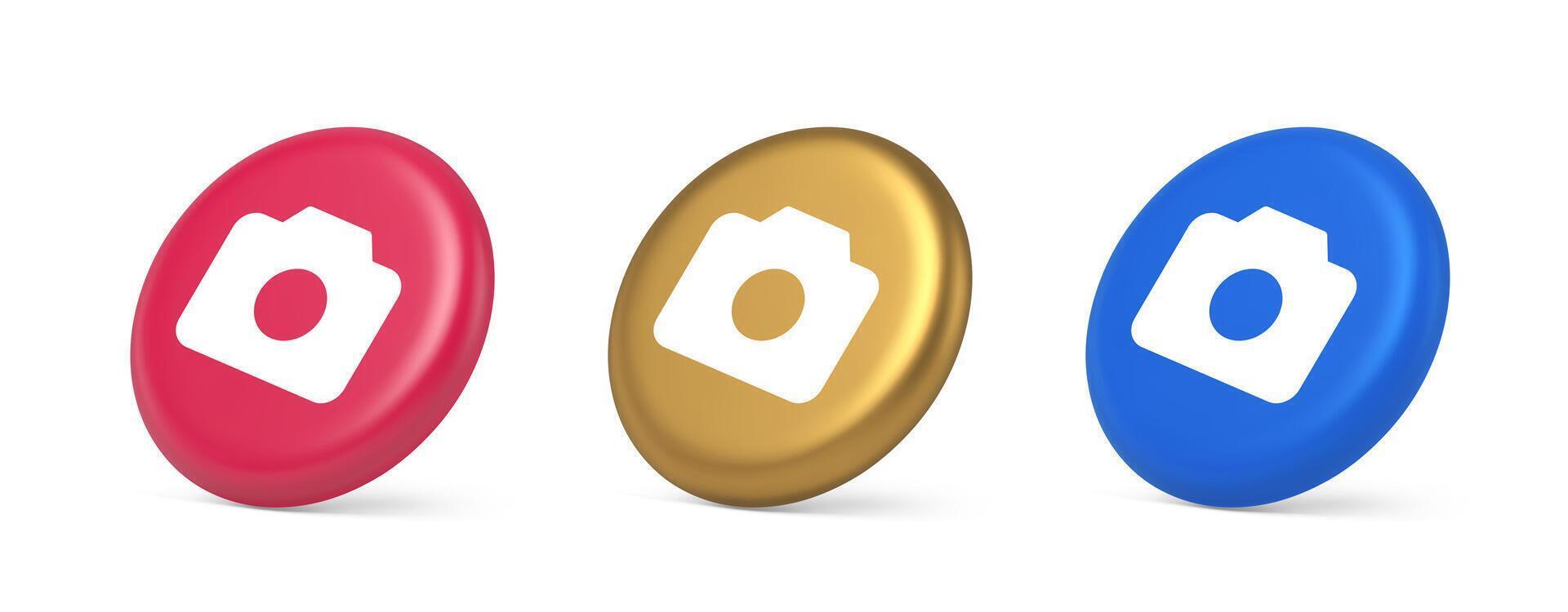 Camera multimedia application content creation digital button 3d realistic isometric circle icon Pro Vector