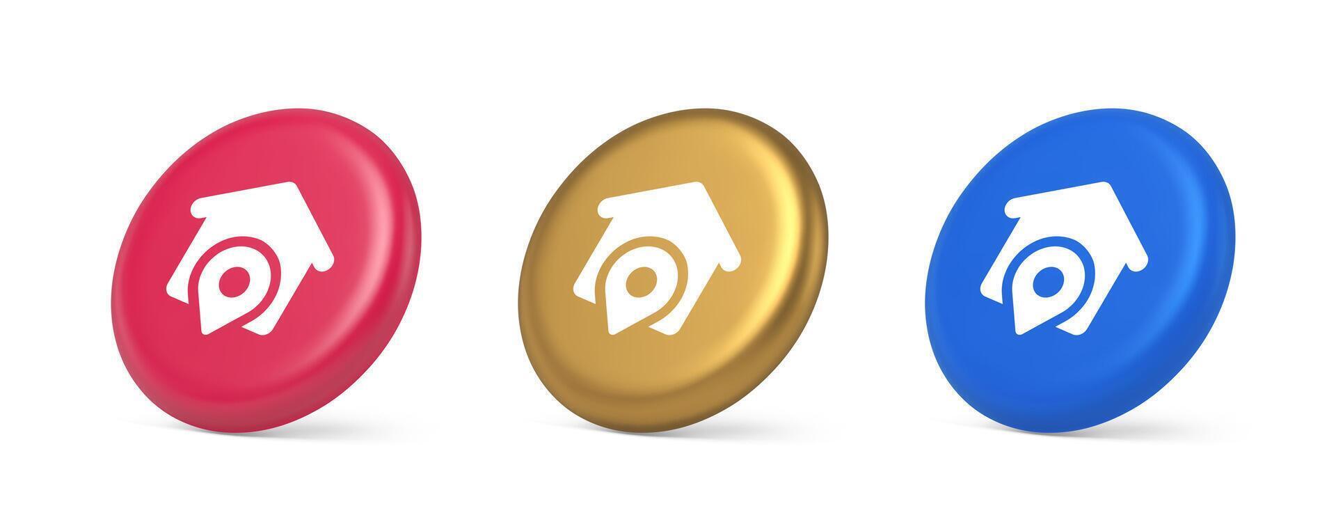 House location GPS route button distance navigation map pin pointer address direction 3d isometric circle icon Pro Vector