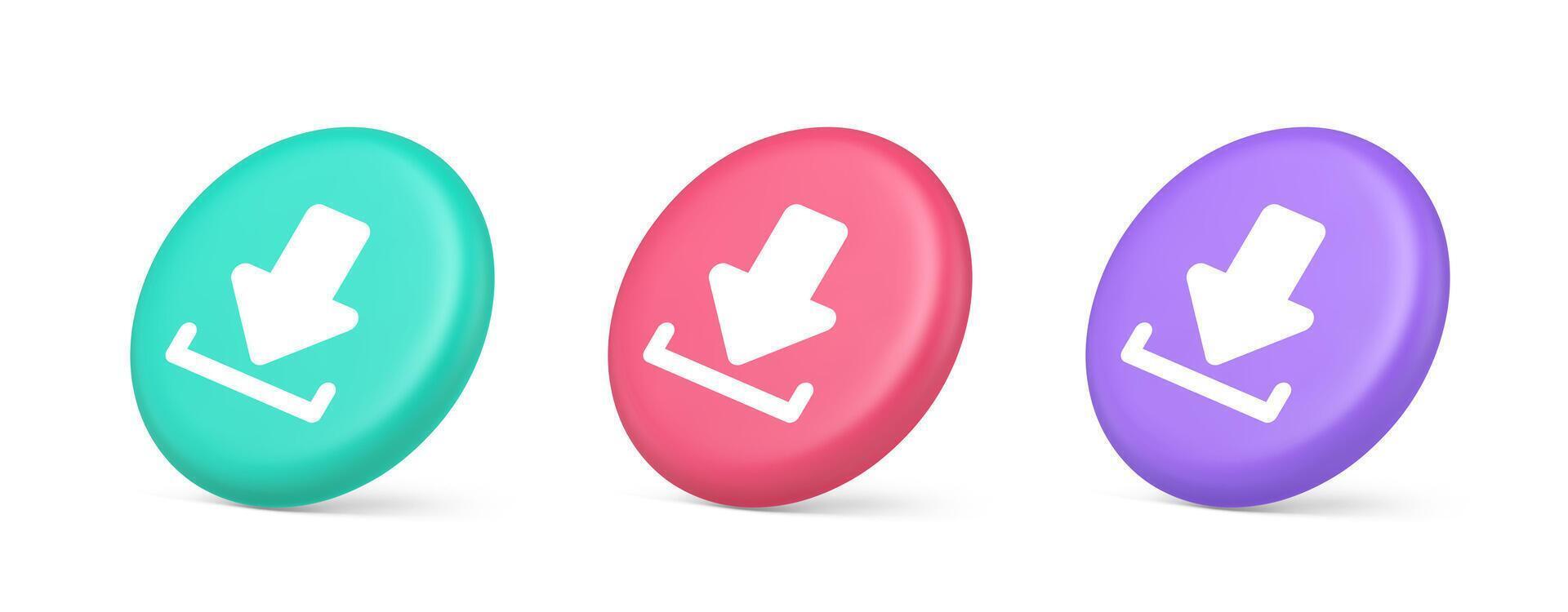 Download down arrow cyberspace information storage button internet file browsing 3d isometric circle icon Pro Vector