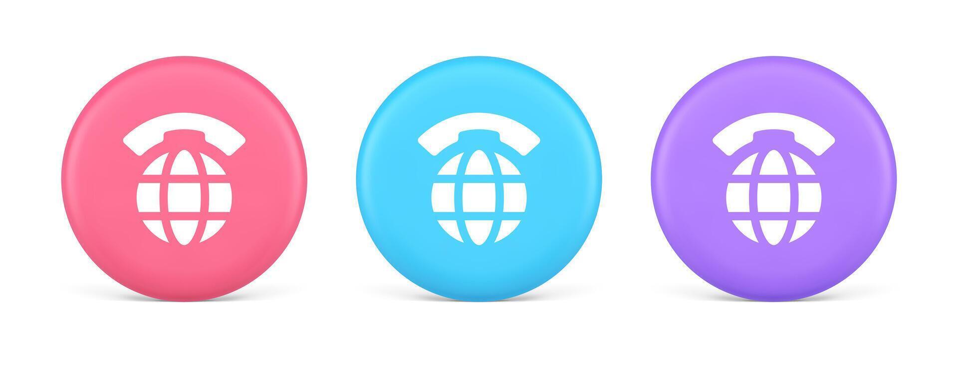 Global communication internet call connection button planet with handset 3d realistic circle icon Pro Vector