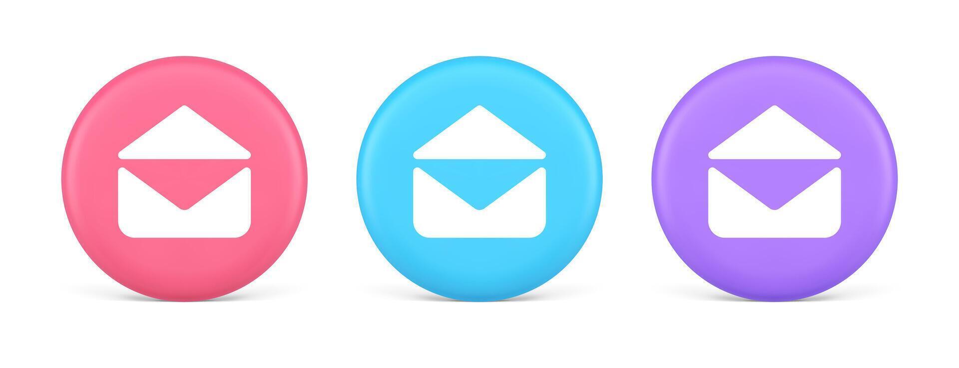 Email open envelope letter received incoming message button 3d realistic circle icon Pro Vector