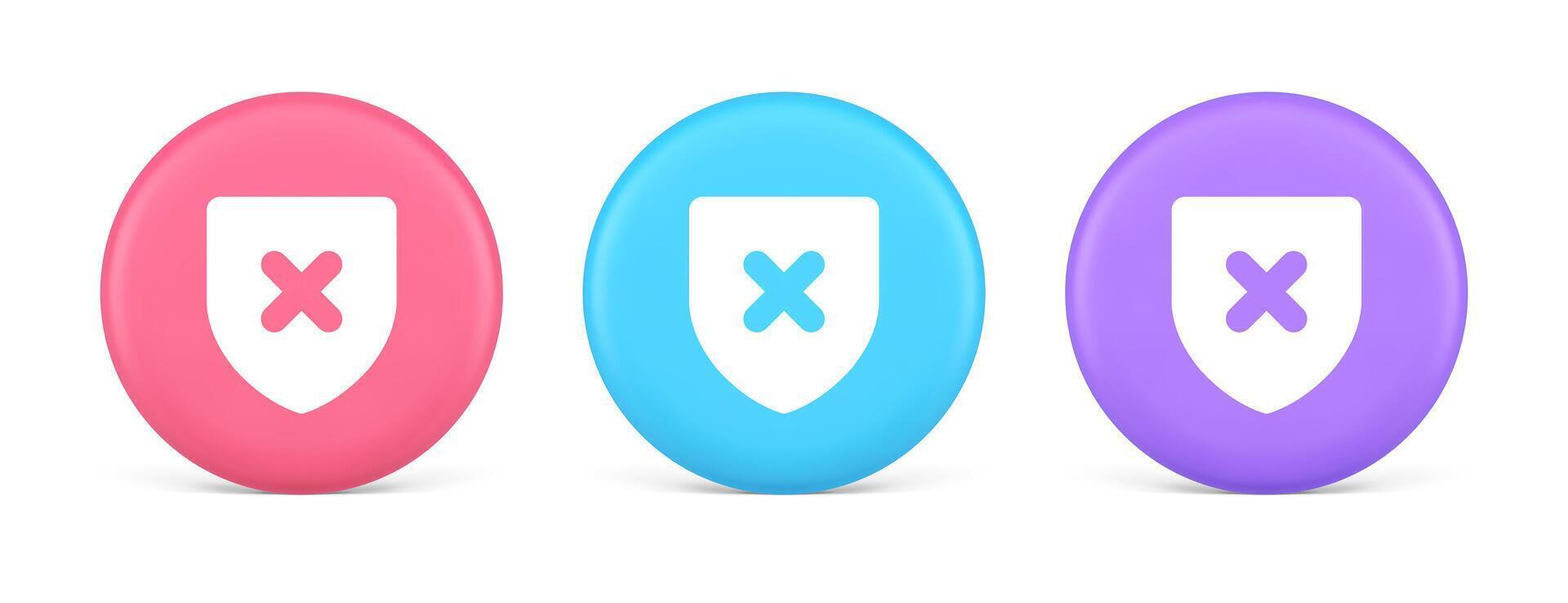Decline shield button cross mark wrong unsend defense virtual guard 3d realistic circle icon Pro Vector