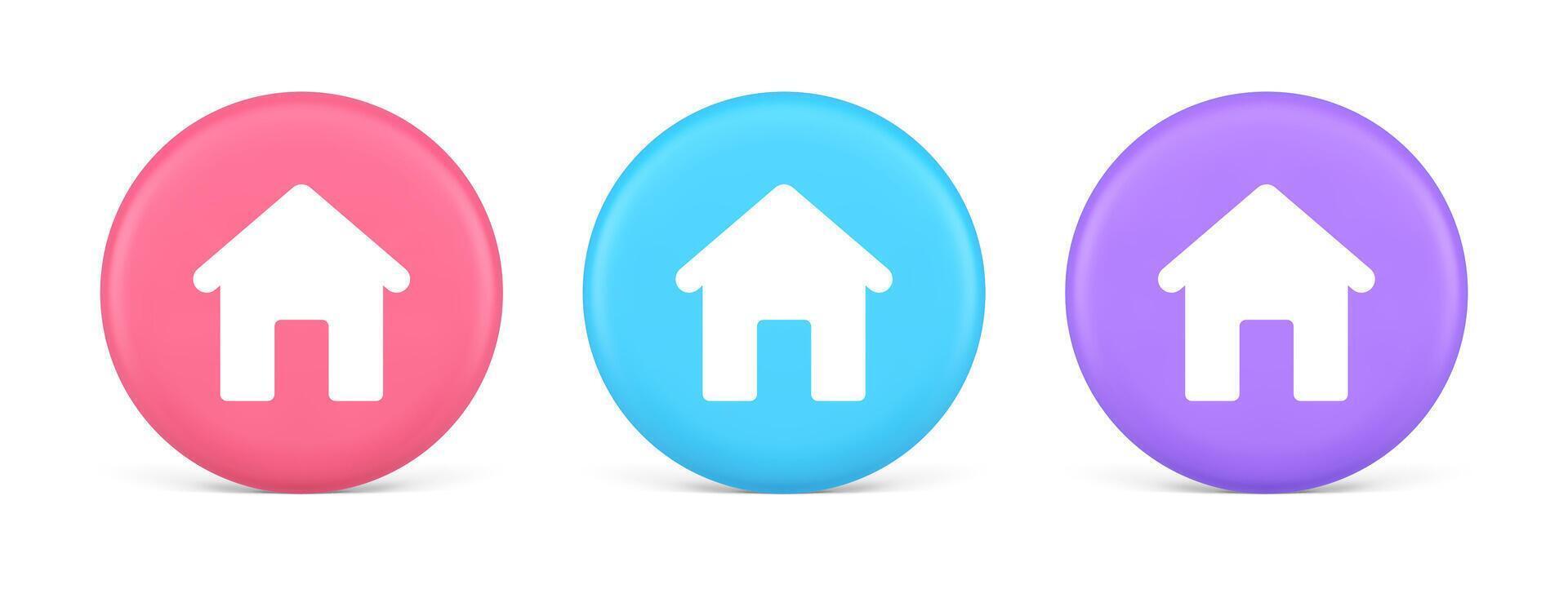 Home page button house web symbol cyberspace application interface 3d realistic circle icon Pro Vector