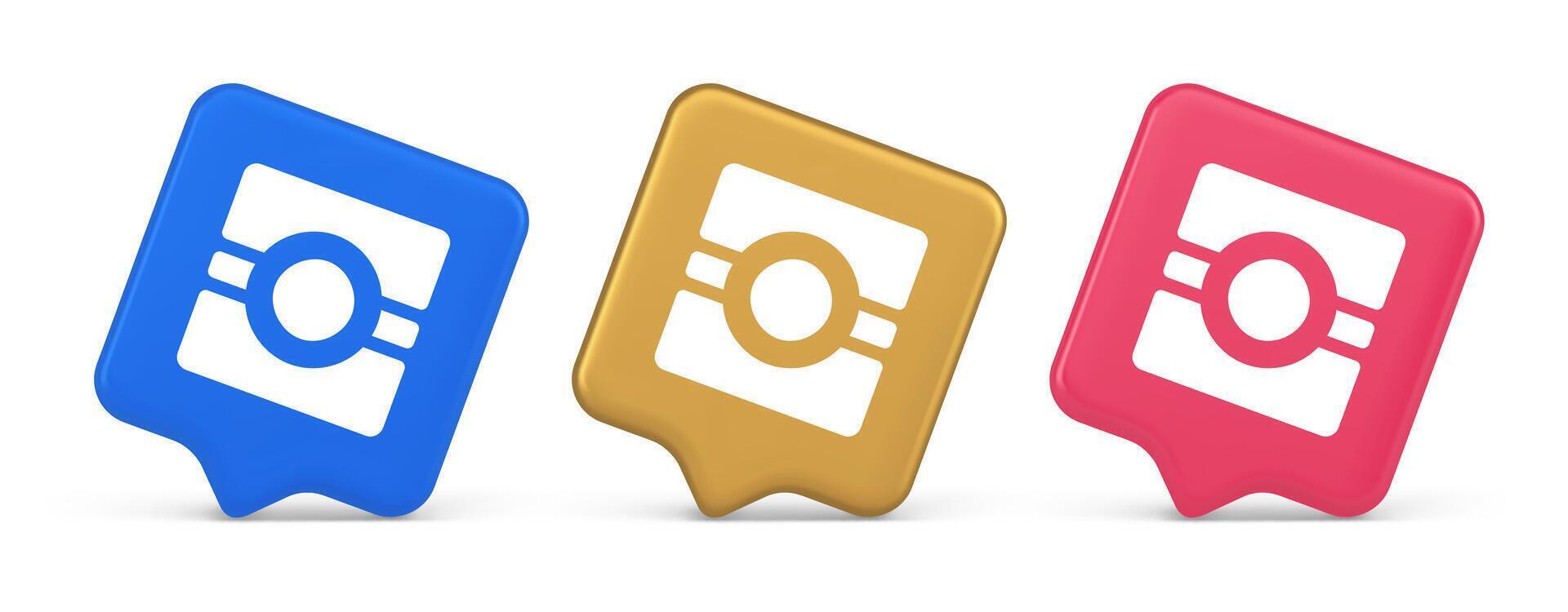 Camera photo application button multimedia photograph service 3d realistic speech bubble icon Pro Vector