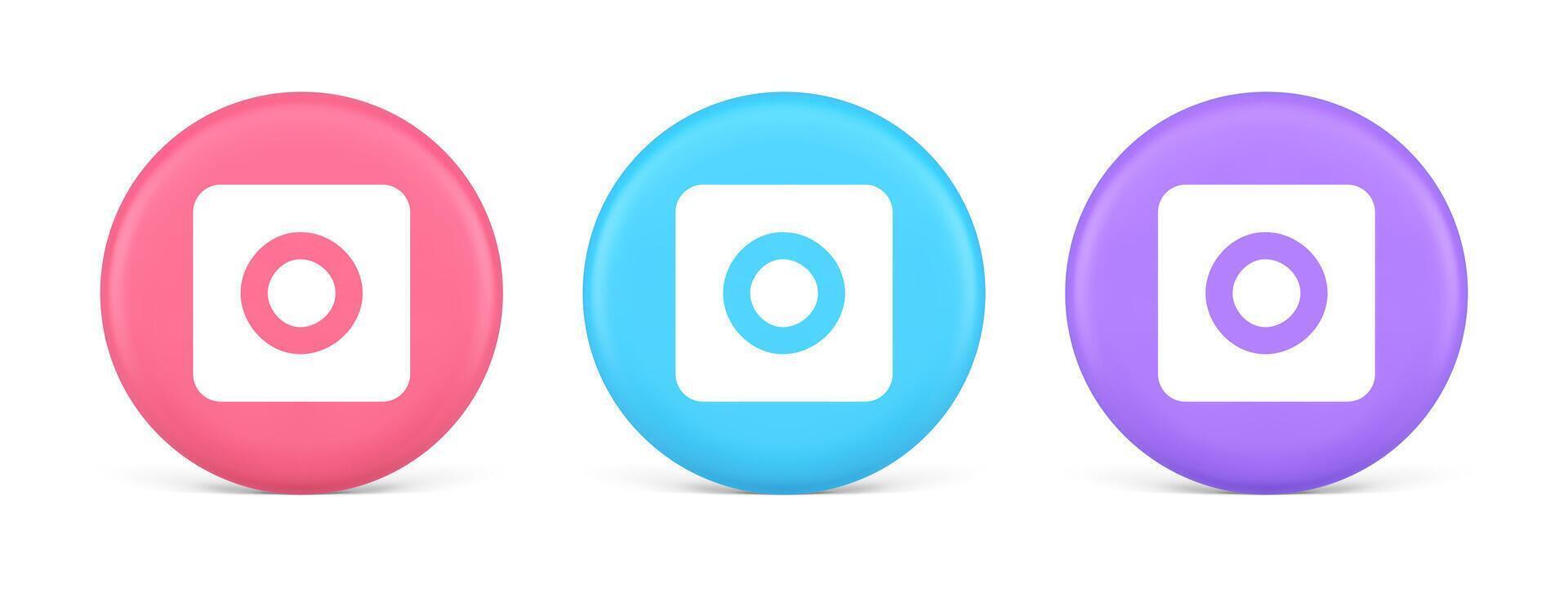 Camera photo shooting button multimedia content creation web application 3d circle icon Pro Vector