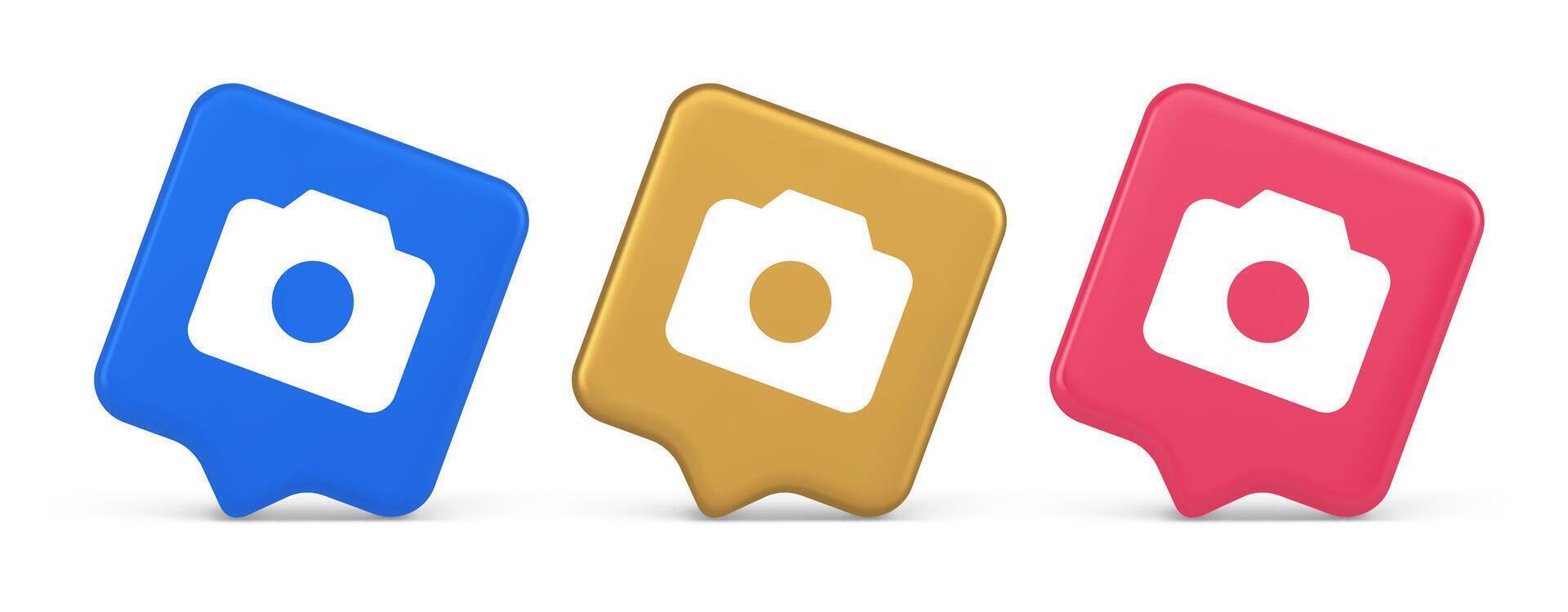 Camera multimedia application content creation digital button 3d realistic speech bubble icon Pro Vector