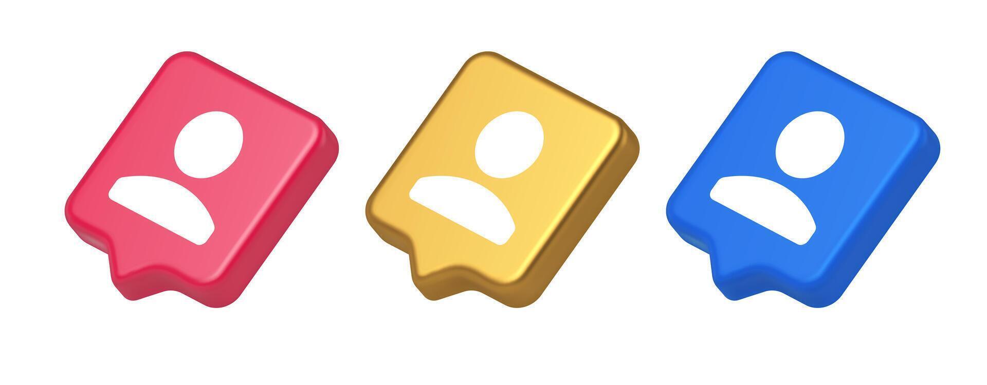 User person human contact button cyberspace account information web app 3d realistic speech bubble icon Pro Vector