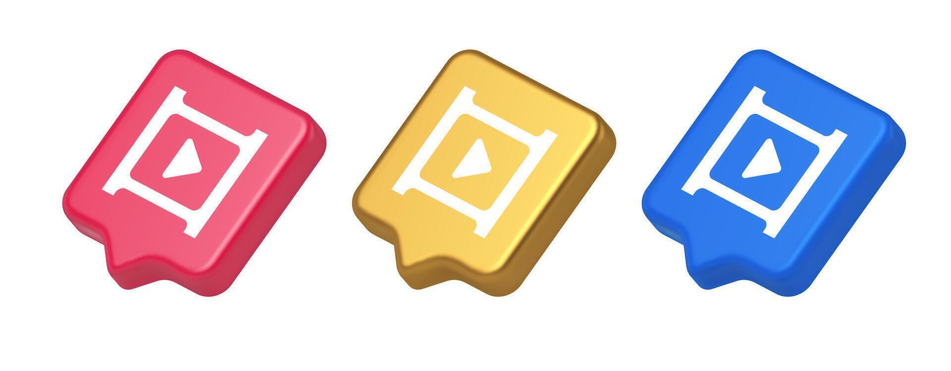 film multimedia content play button digital player broadcasting 3d realistic speech bubble icon Pro Vector
