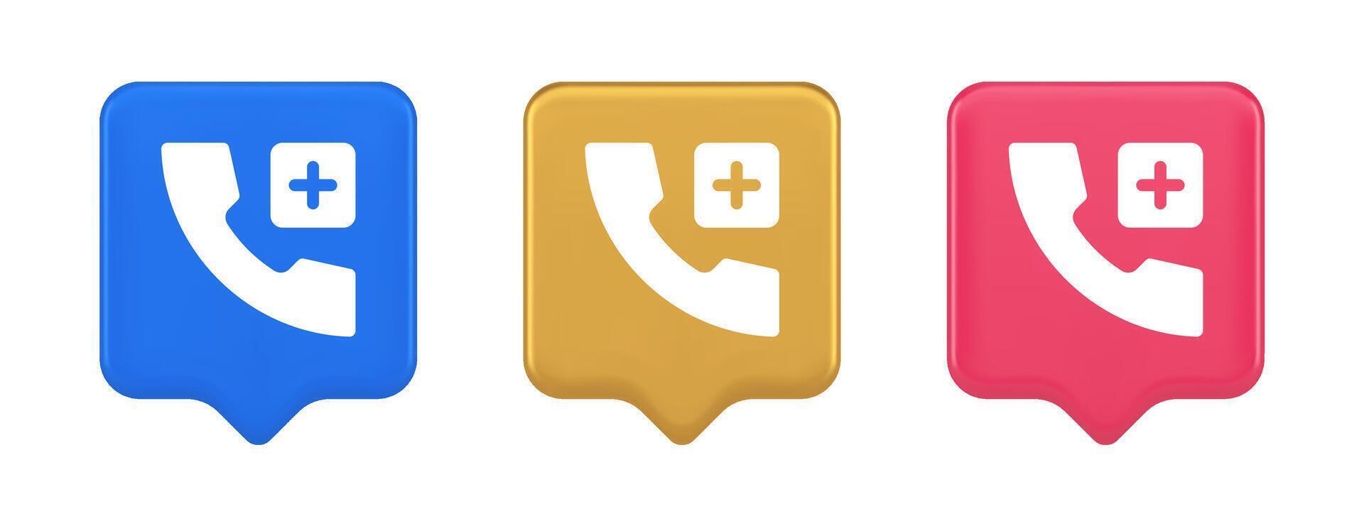 Call phone add emergency hotline service squared button 3d realistic speech bubble icon Pro Vector