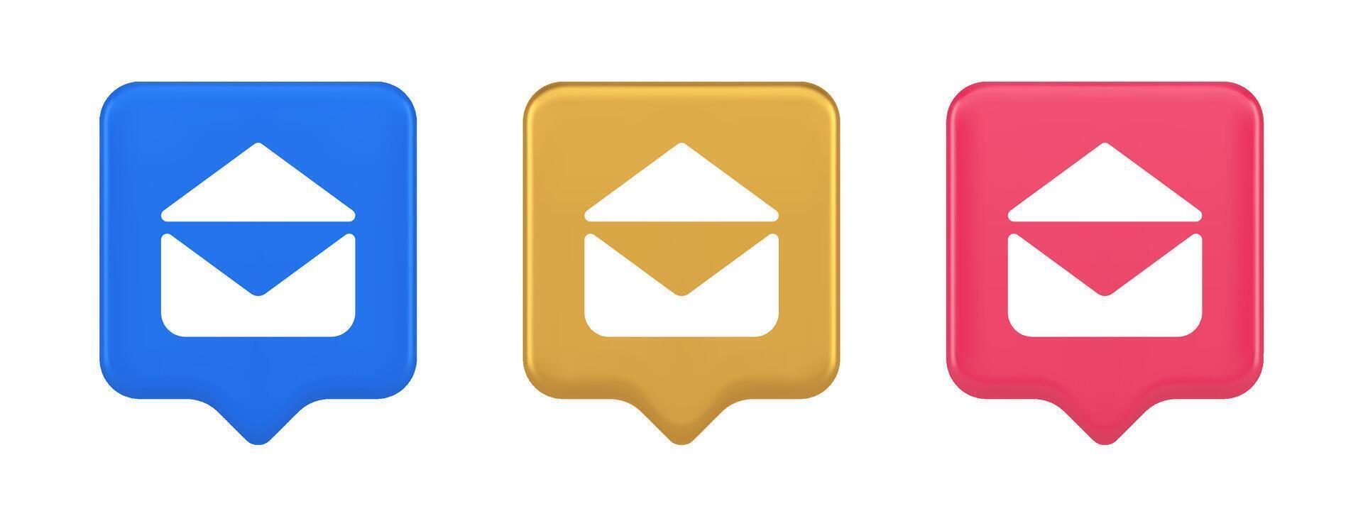 Email open envelope letter received incoming message button 3d realistic speech bubble icon Pro Vector