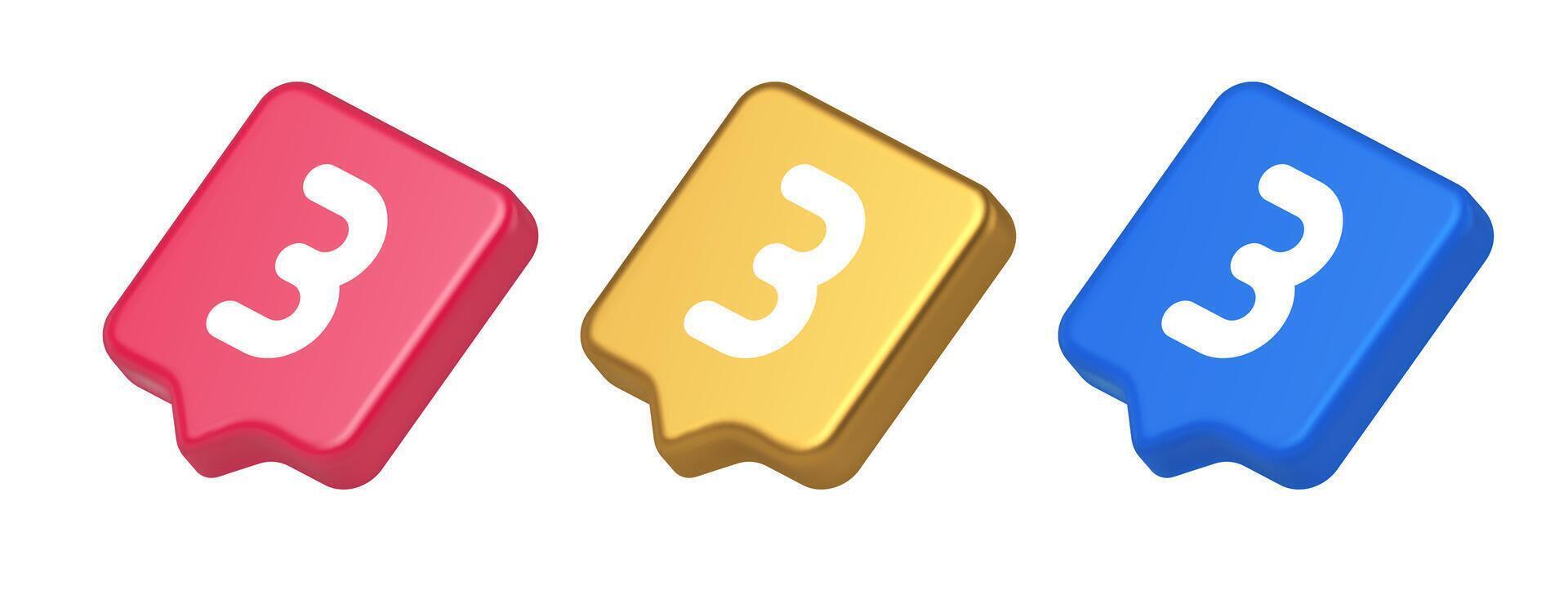 Three number button internet communication texting message character 3d realistic speech bubble icon Pro Vector