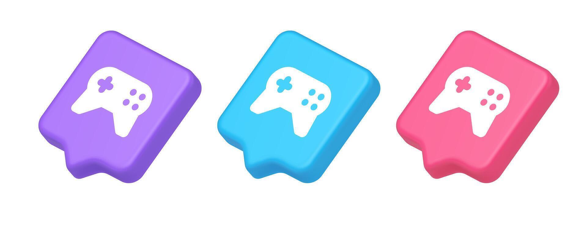 Gamepad controller virtual gaming connect button joystick joypad web app 3d realistic speech bubble isometric icon Pro Vector