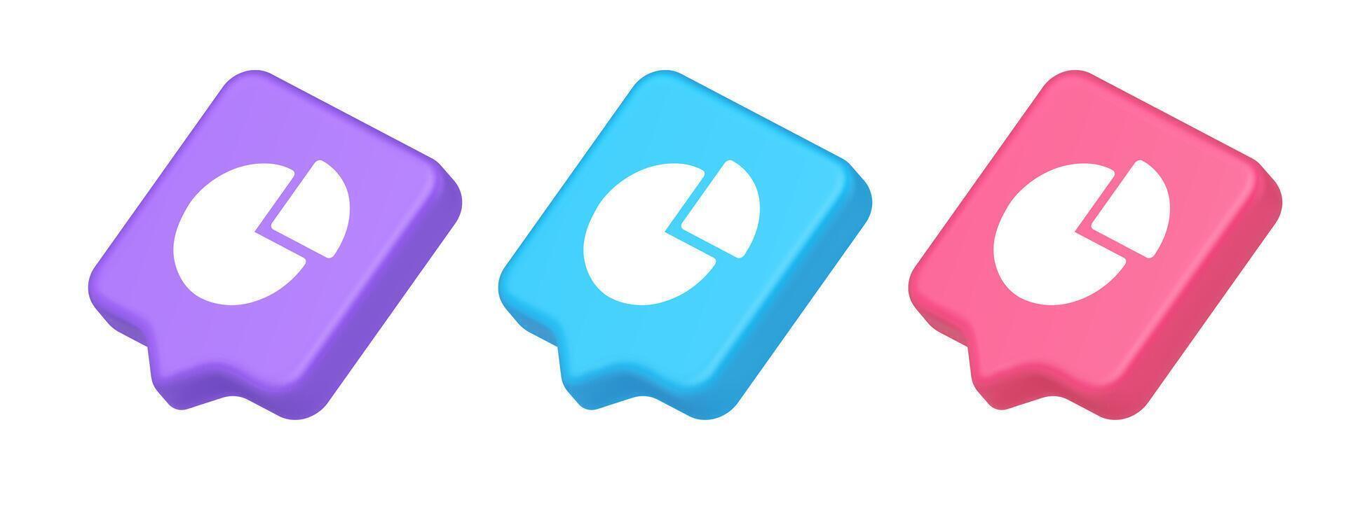 Chart pie diagram piece button business presentation financial report 3d realistic speech bubble isometric icon Pro Vector
