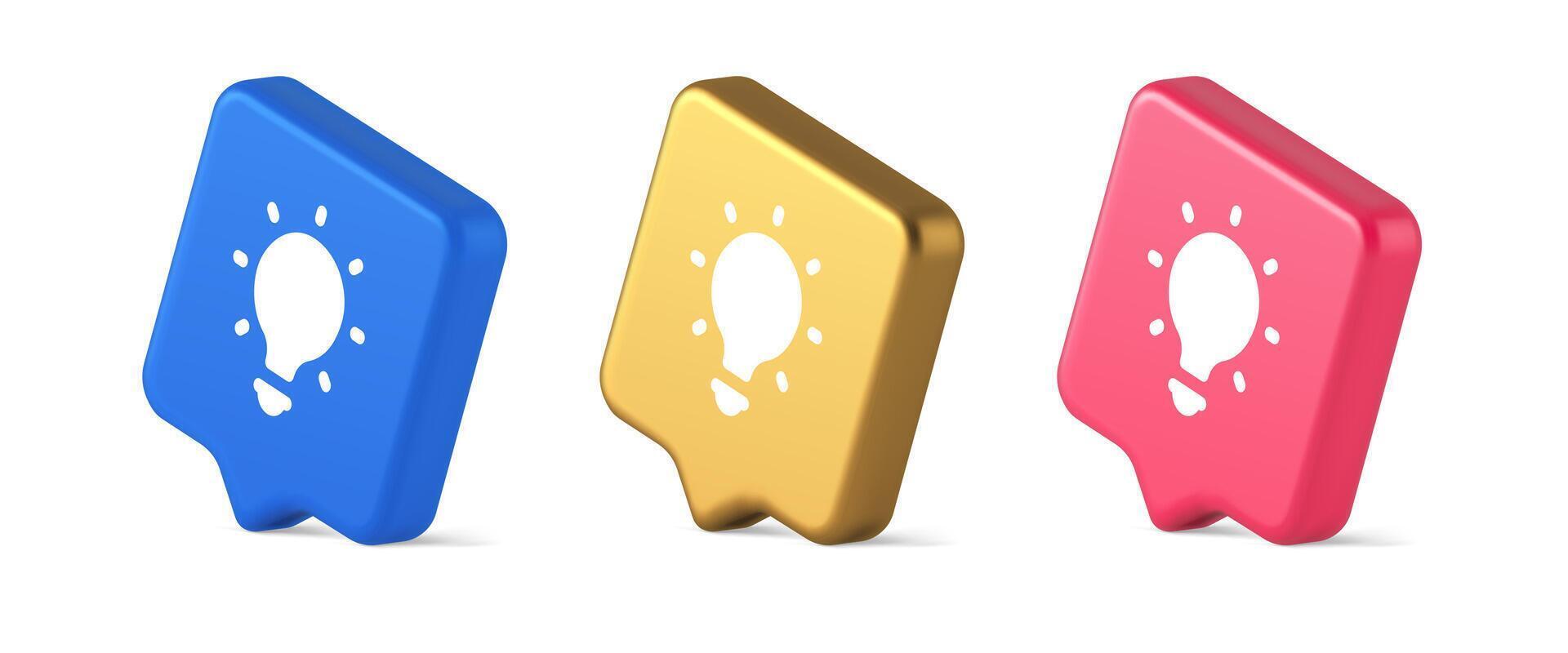 Light bulb illuminated innovation idea button brainstorming creative solution 3d speech bubble isometric icon Pro Vector