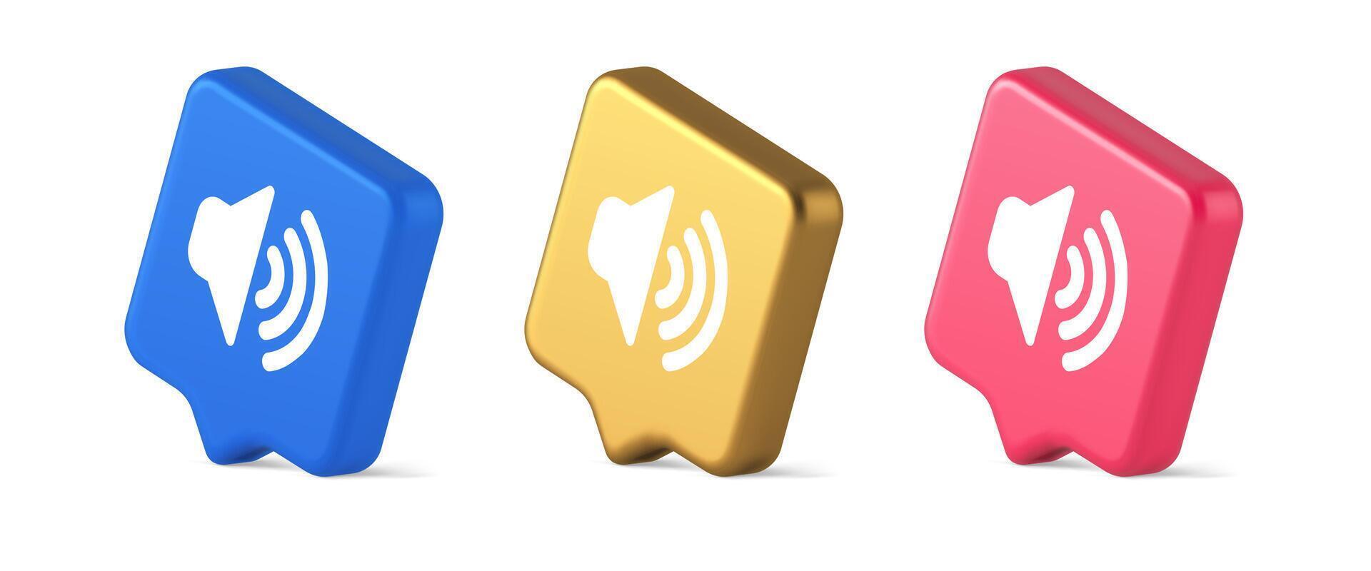 Volume sound button speaker acoustic level noise wave control 3d realistic speech bubble isometric icon Pro Vector