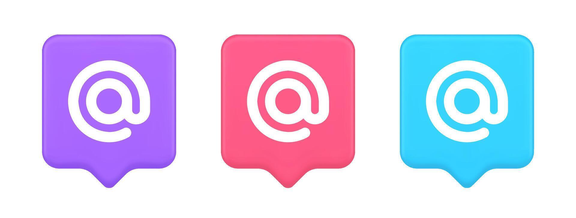 Email address digital symbol button internet chatting cyberspace communication 3d speech bubble icon Pro Vector