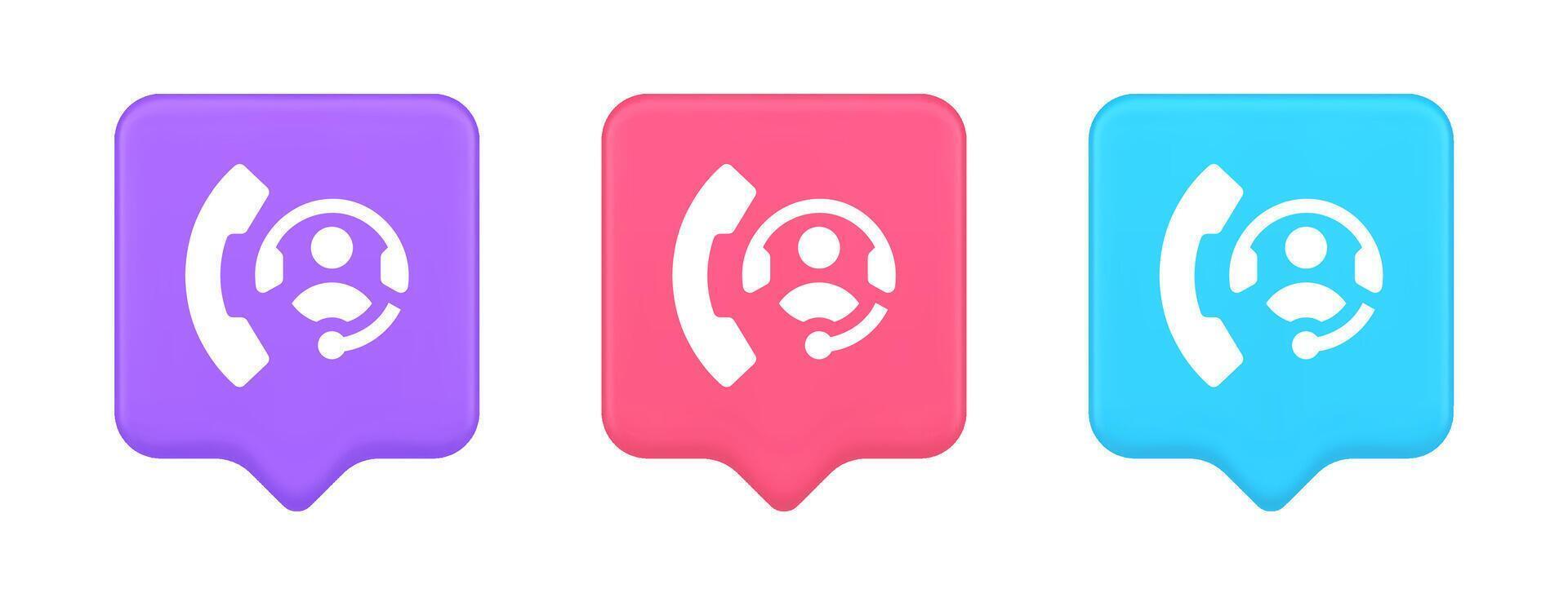 Emergency call helpline assistance button customer support service 3d realistic speech bubble icon Pro Vector
