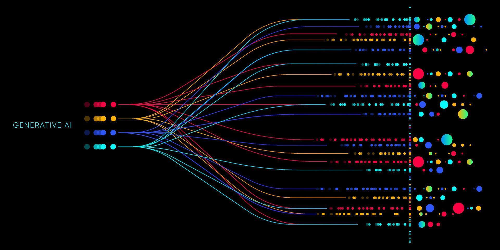 Illustration of abstract stream information with cyan line and dot. Big data, technology, AI, data transfer, data flow, large language model, natural language processing, LLM, NLP Pro Vector
