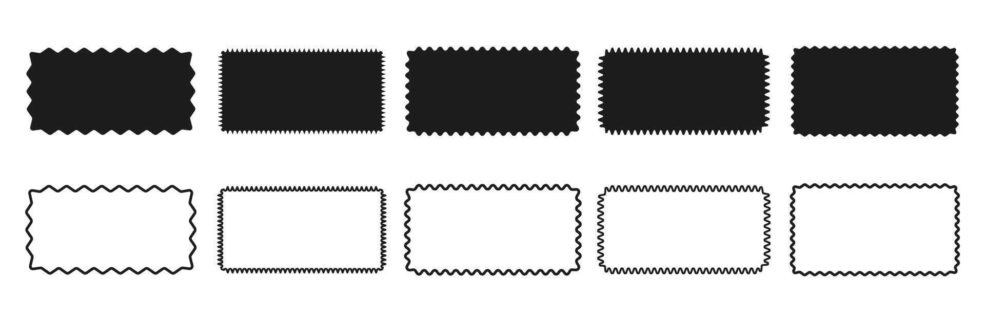 Rectangular frame borders with zigzag wavy edges. Set of geometric shapes isolated on white background. illustration Pro Vector